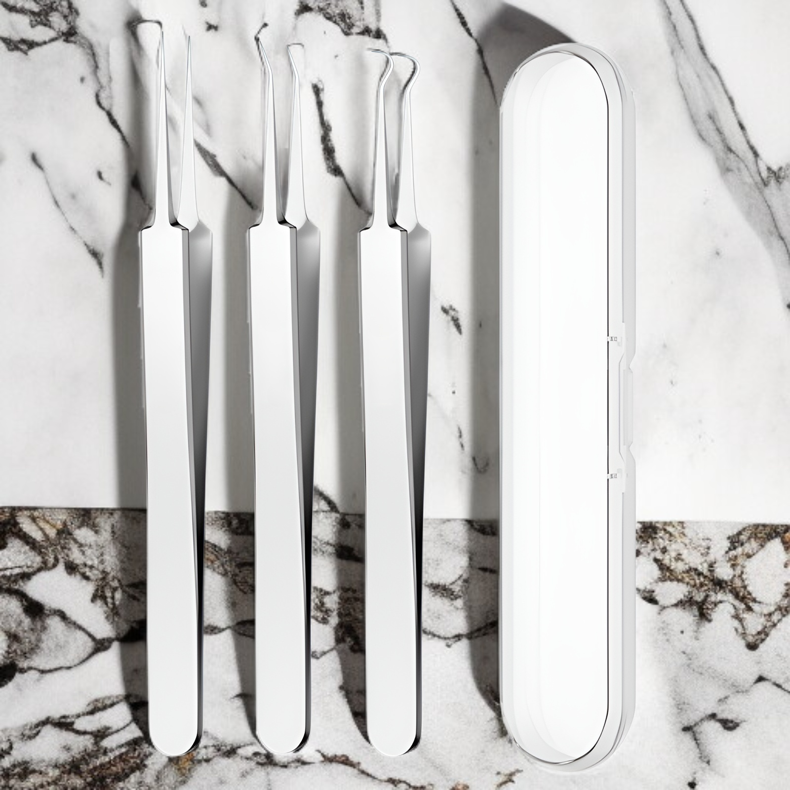 ● Zawiera różne końcówki oraz pęsetę, umożliwiając precyzyjne usuwanie trądziku, zaskórników i innych niedoskonałości skóry bez podrażnień.